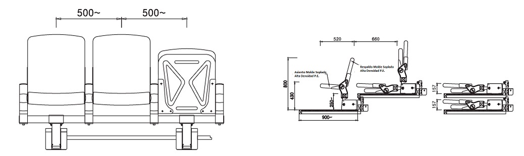 ■ Soporte de asiento y respaldo: placa de acero plegada de 3 mmT