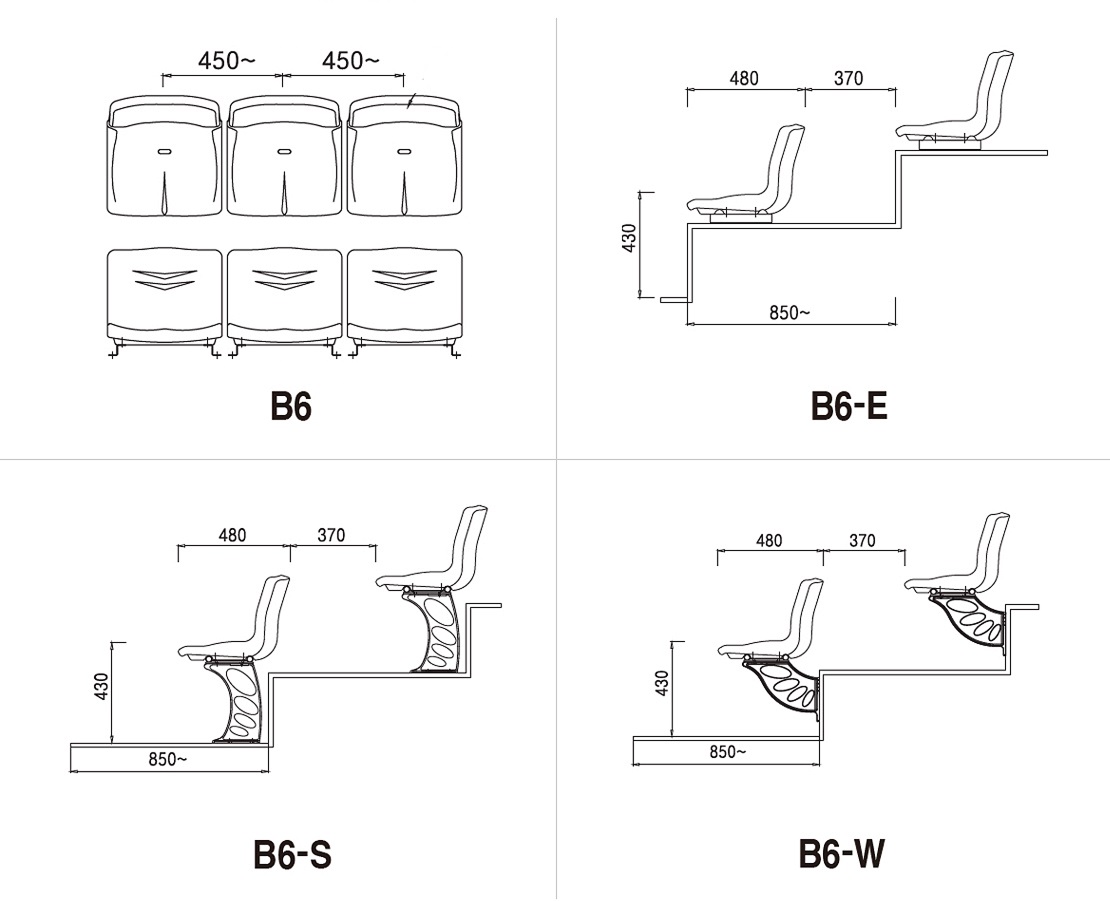 ■ Centro a centro por asiento: 450 mm -