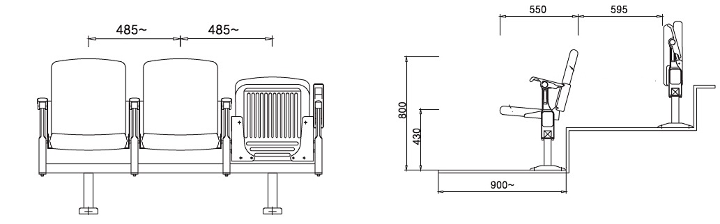■ Centro a centro por asiento: 485 mm - 500 mm