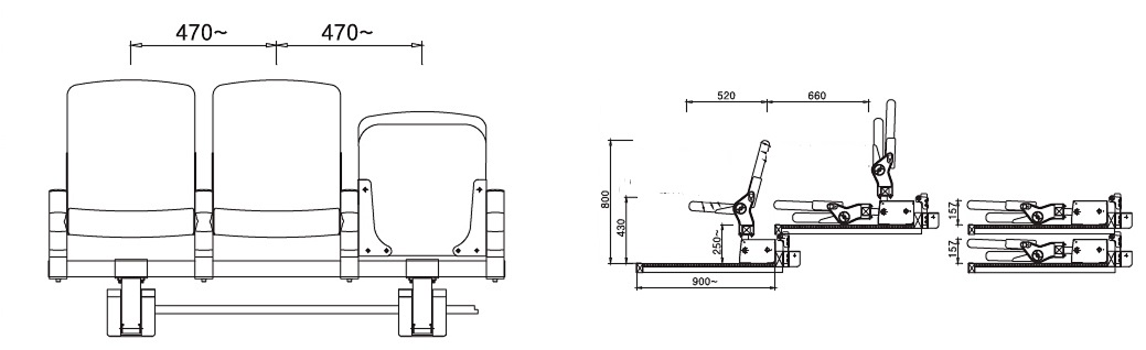 ■ Centro a centro por asiento: 470 mm - 500 mm