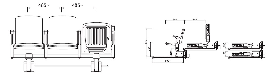 ■ Centro a centro por asiento: 485 mm - 550 mm