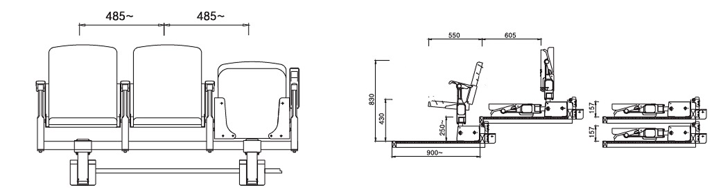 ■ Centro a centro por asiento: 485 mm - 500 mm