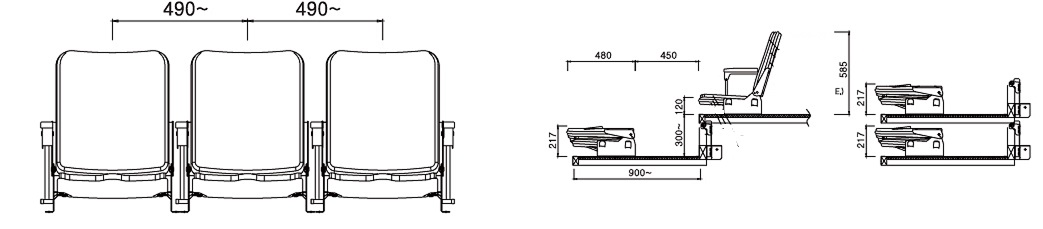 ■ Centro a centro por asiento: 460 mm - 550 mm
