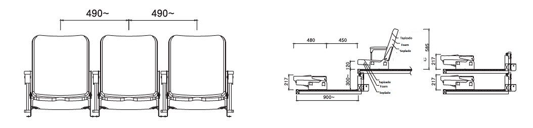 ■ Centro a centro por asiento: 460 mm - 550 mm