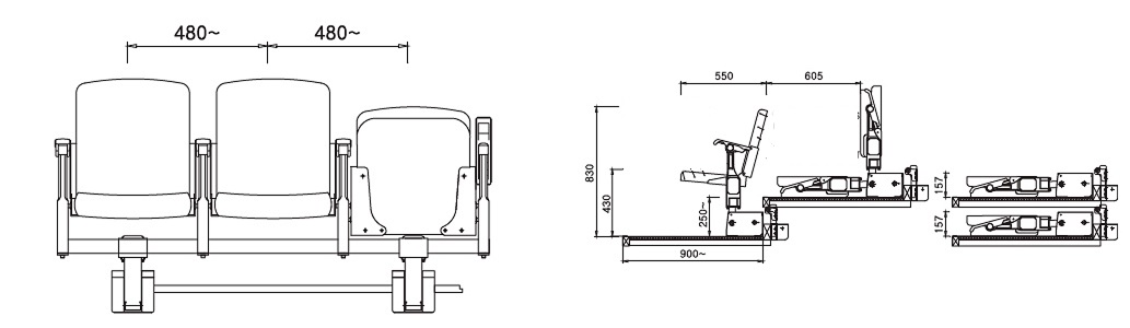 ■ Centro a centro por asiento: 480 mm - 550 mm