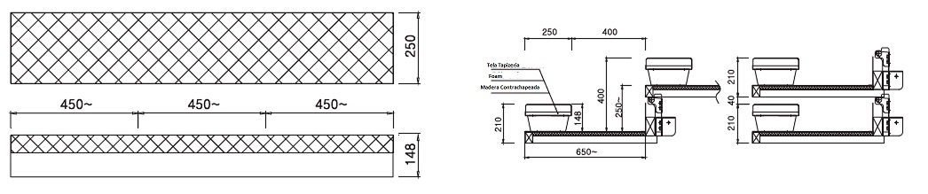 ■ Asiento y respaldo: HPM en madera contrachapada de 18 mmT