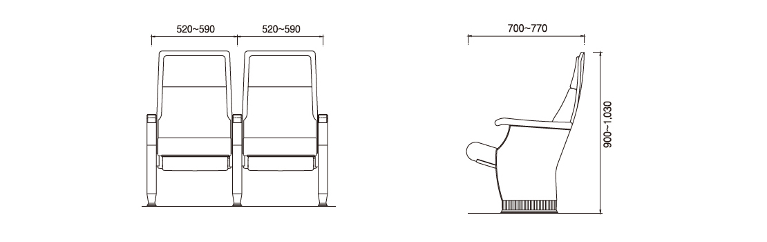 ■ Centro a centro por asiento: 520 - 590 mm