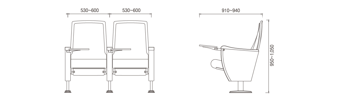■ Centro a centro por asiento: 530 - 600 mm