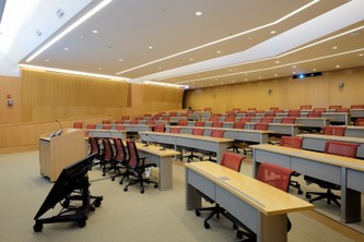 Los asientos de la sala de conferencias están diseñados no solo para proporcionar comodidad a quienes toman clases, pero también para aumentar su enfoque y las mesas grandes permiten el uso de computadoras portátiles para cumplir las necesidades de uso.